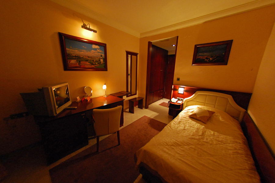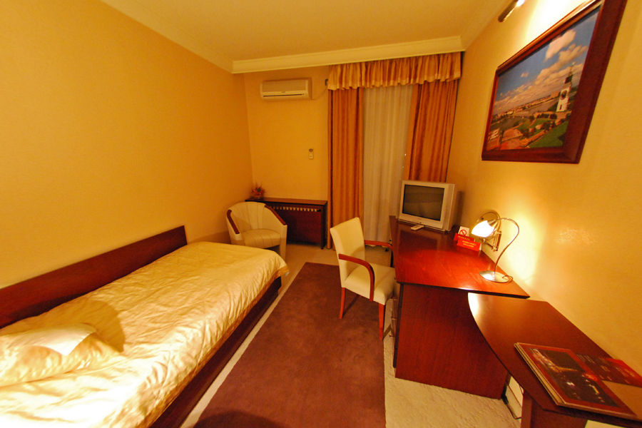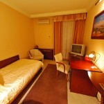 Soba površine 18 m², opremljena jednim krevetom dimenzije 90x200cm finim vunenim tepihom i odvojenim kupatilom sa hidromasažnom kadom ili tuš kabinom.